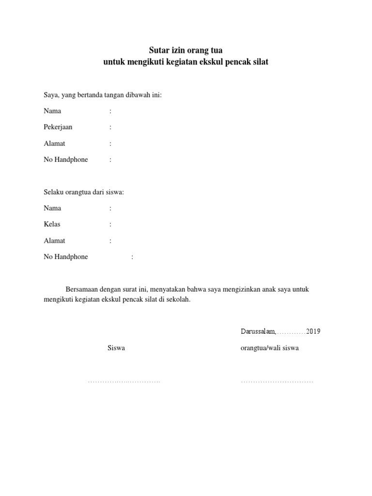 Join our community just now to flow with the file surat ijin orang tua and make our shared file collection even more complete and exciting. If you are the copyright owner for this file, please report abuse to 4shared. Pasti acara belajar ke sekolah jadi batal kan. Here you can download file surat ijin orang tua. Lalu apa yang kamu lakukan?